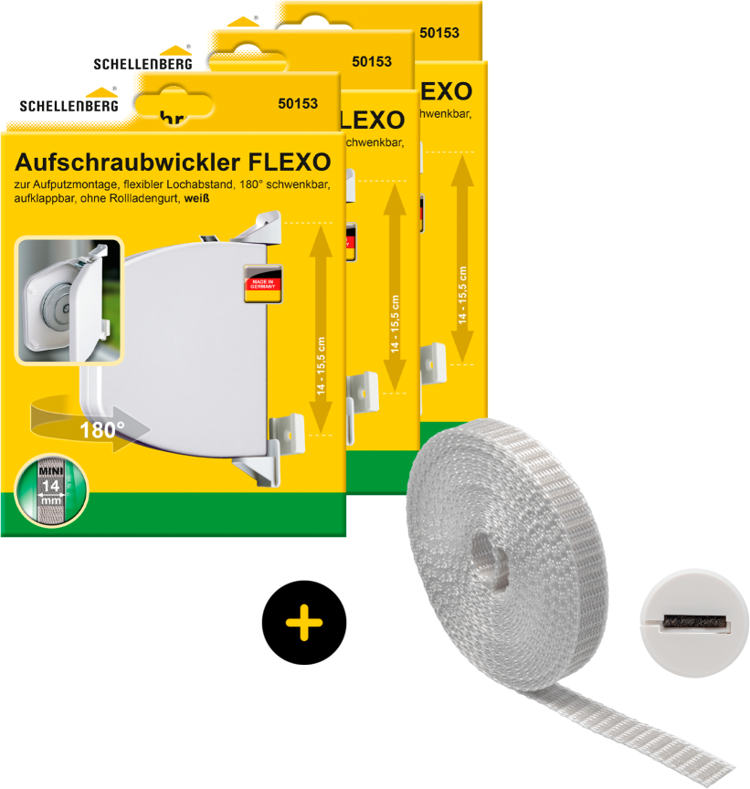 SCHELLENBERG Aufputz-Gurtwickler "Flexo Rollladensystem Mini, inkl. Gurt grau und Gurtführung" Set, 3 Stk. tlg. Aufschraubwickler aufklappbar, höhenverstellbar, 180 schwenkbar weiß 64,60 EURO Zum Produkt