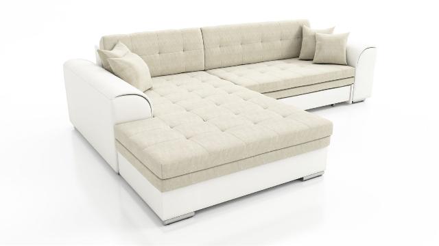 Couchgarnitur SARRA Weiss- Beige mit Schlaffunktion Ottomane Links 898,00 EURO Zum Produkt