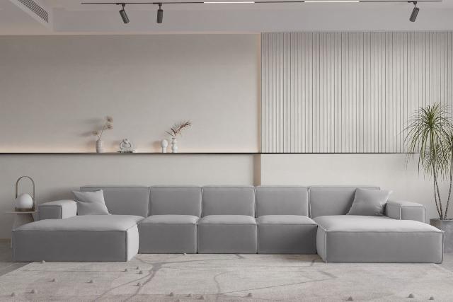 Wohnlandschaft U-Form CELES PREMIUM XL in Stoff Opera Velvet Hellgrau 1309,00 EURO Zum Produkt