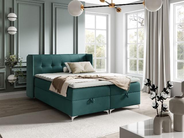 Boxspringbett Bett Schlafzimmerbett 160x200cm GENET Stoff Matt Velvet Meeresgrün