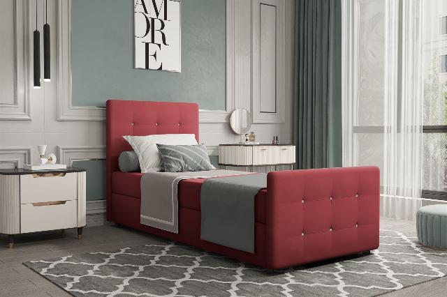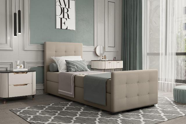 Boxspringbett Gästebett MARKOS 90x220cm Bettkasten Seite Links Stoff Braun