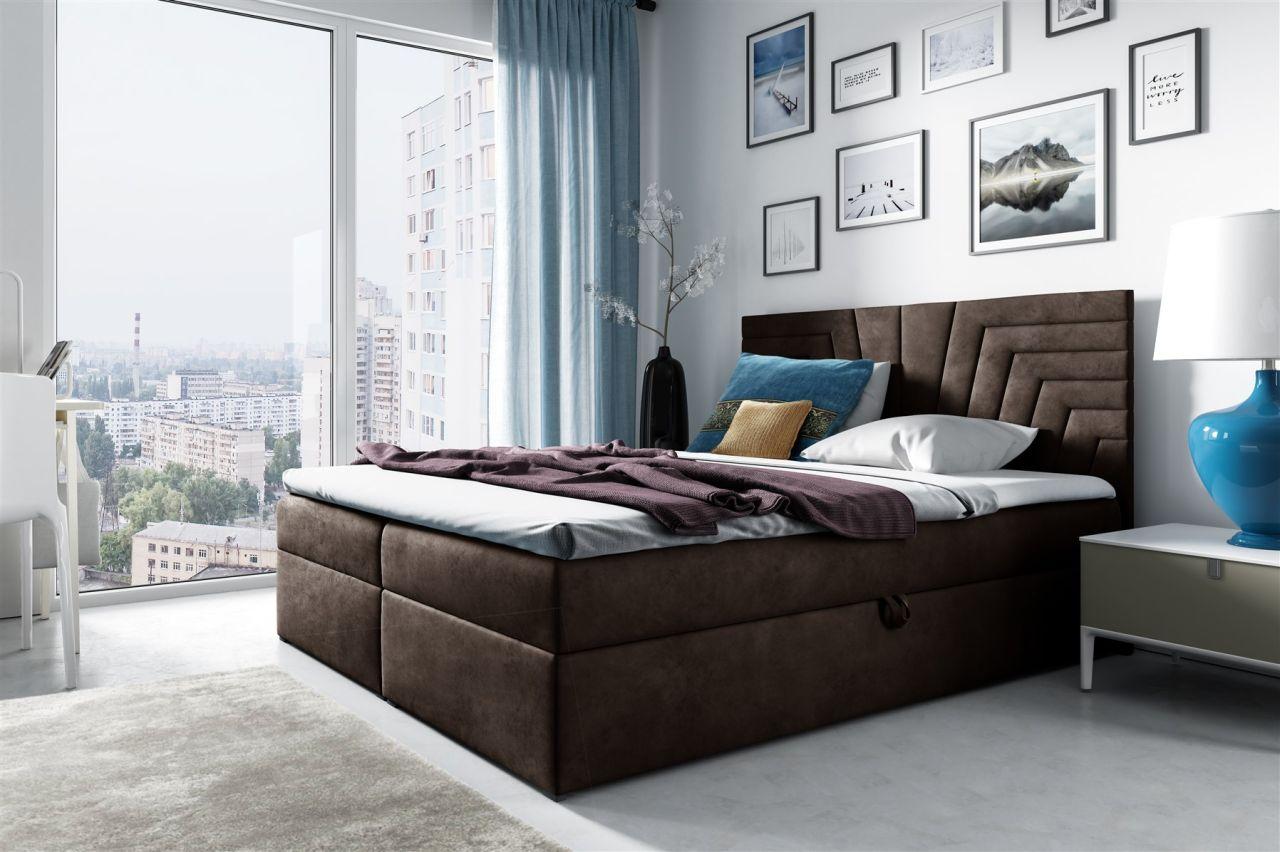 Boxspringbett Schlafzimmerbett 160x220cm LAZARO Nr.2 Braun inkl. Bettkasten