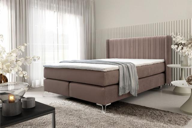 Boxspringbett Schlafzimmerbett AGNUS 160x200cm in Stoff Salvador Creme