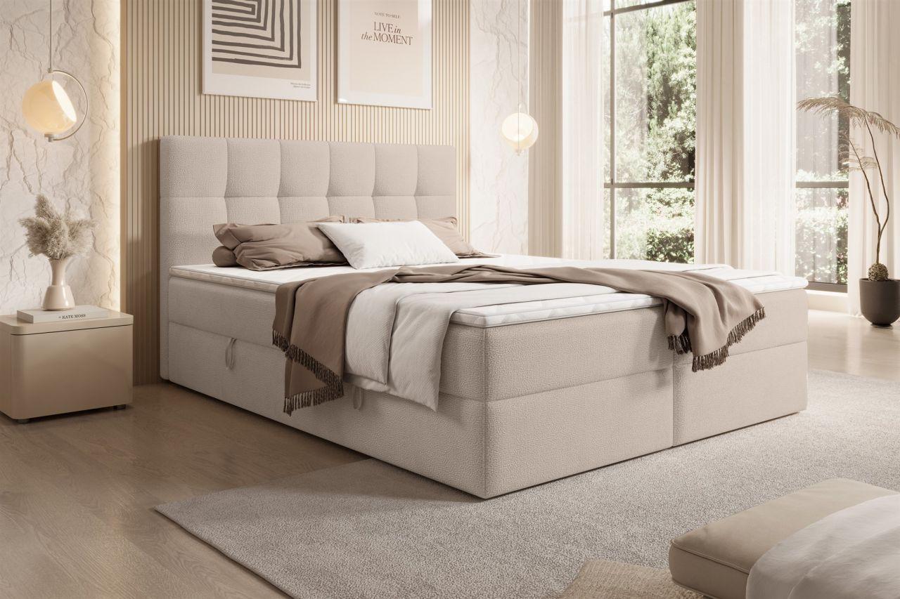 Boxspringbett Schlafzimmerbett ARTURO 140x200cm Stoff Freya Cappuccino