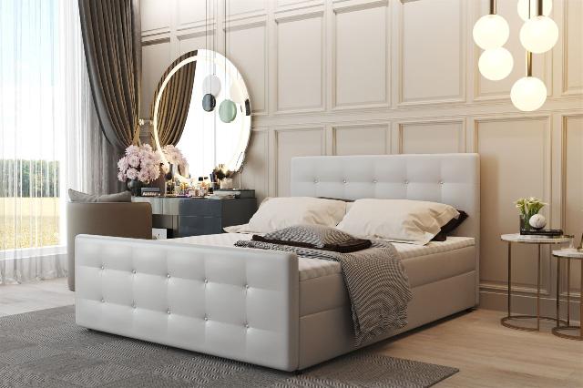 Boxspringbett Schlafzimmerbett CARLOS Kunstleder "Madryt" in Weiß 200x200cm inkl. 2 x Bettkasten Boxspringbett / Polsterbett CARLOS mit aufklappbaren Bettkästen Das extrava...