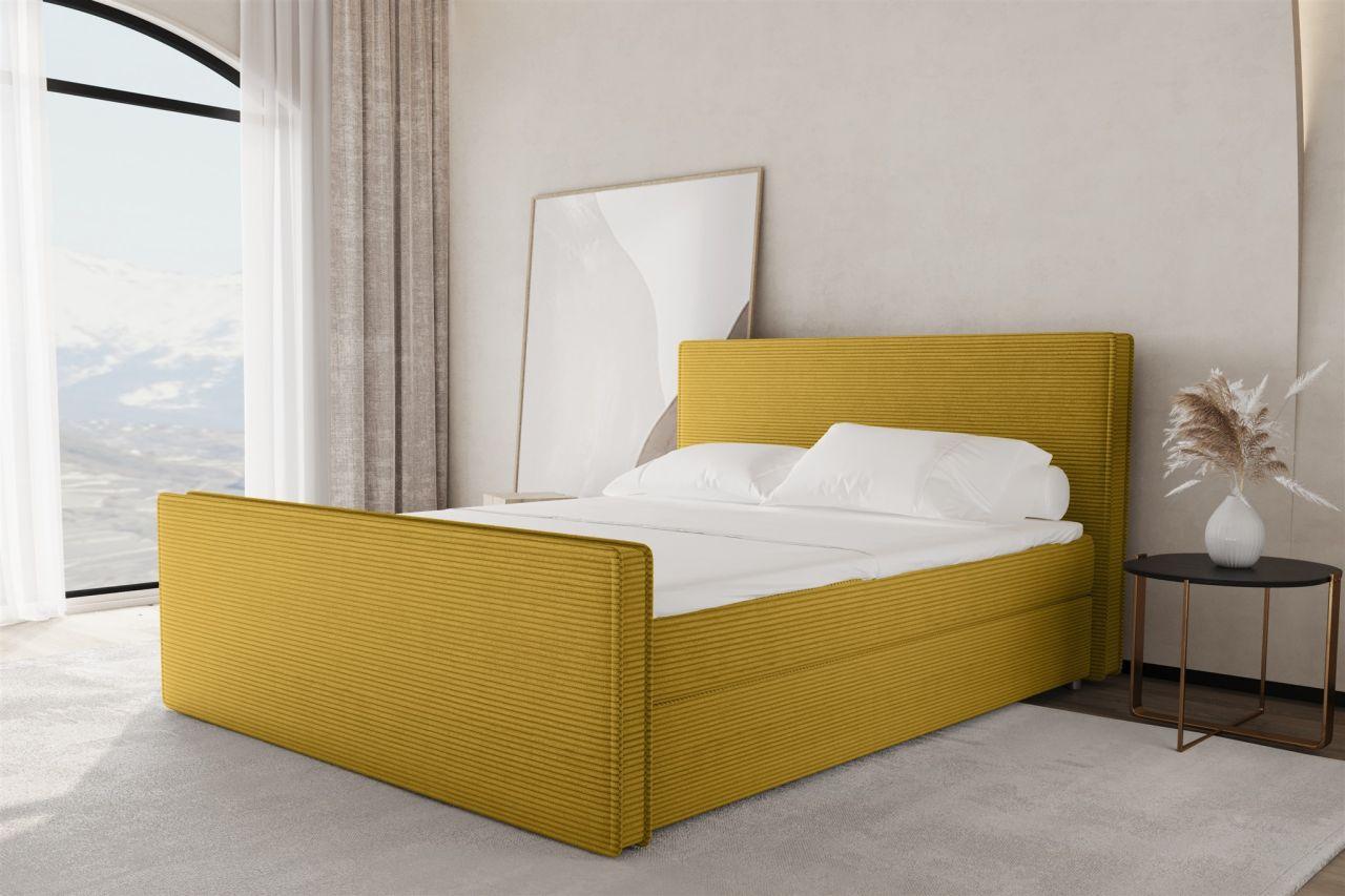 Boxspringbett Schlafzimmerbett CELES 160x200cm Stoff Poso Senfgelb