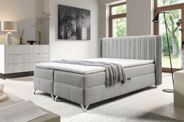 Boxspringbett Schlafzimmerbett DAMIEN 120x200cm Stoff Salvador Hellgrau