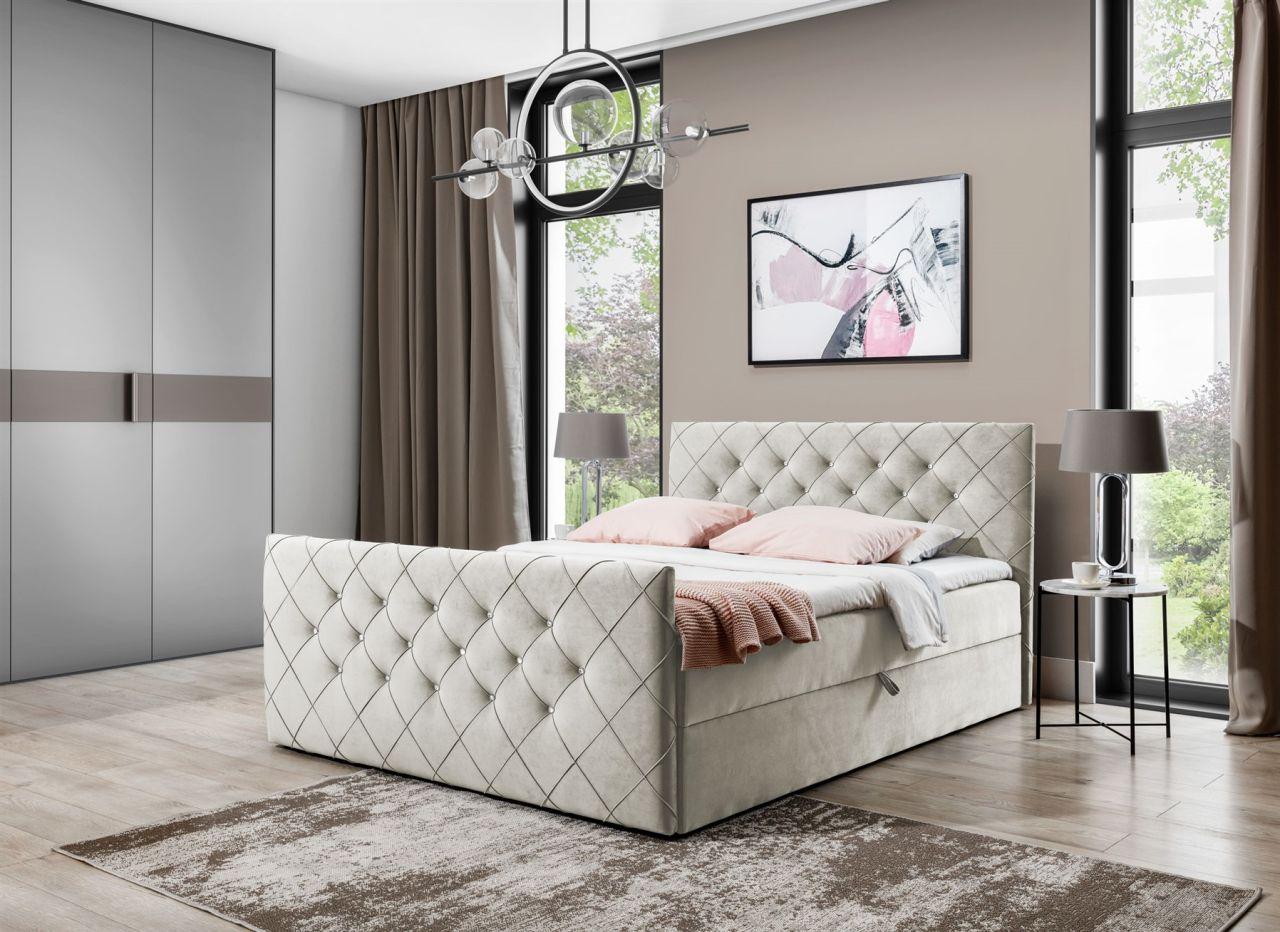 Boxspringbett Schlafzimmerbett EIVOR Stoff "Magic Velvet" in Hellgrau 200x220cm inkl. 2 x Bettkasten Boxspringbett / Polsterbett EIVOR mit aufklappbaren Bettkästen Das extravagante Box...