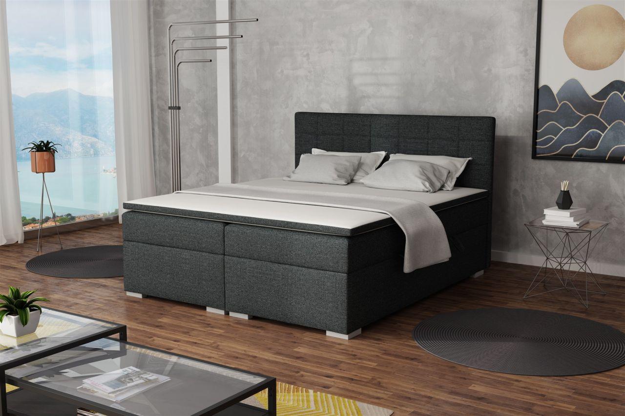 Boxspringbett Schlafzimmerbett FARUK 160x200cm Stoff Inari Schwarz