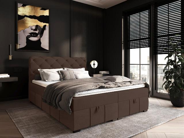 Boxspringbett Schlafzimmerbett GISEL Stoff Salvador / Schokobraun 200x200cm inkl. 2 x Bettkasten Boxspringbett / Polsterbett GISEL mit aufklappbaren Bettkästen Das extravagante S...