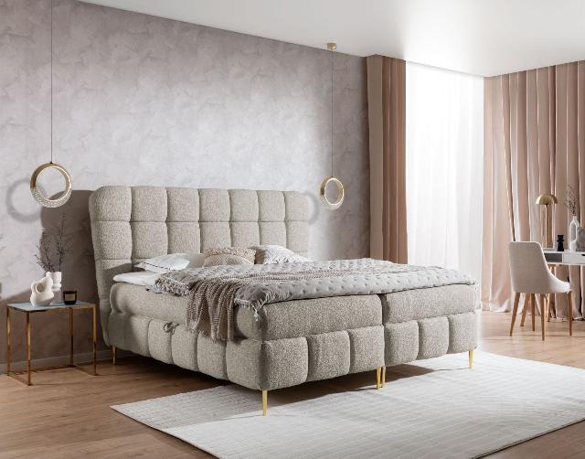 Boxspringbett Schlafzimmerbett GRAZIA 160x200cm Stoff Corbett Cappuccino