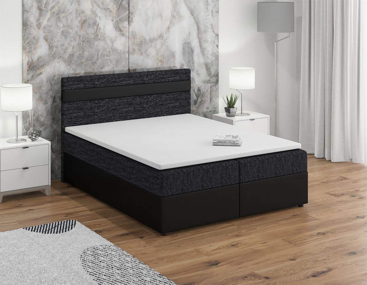 Boxspringbett Schlafzimmerbett INVERN 180x200cm Weiss-Schwarz