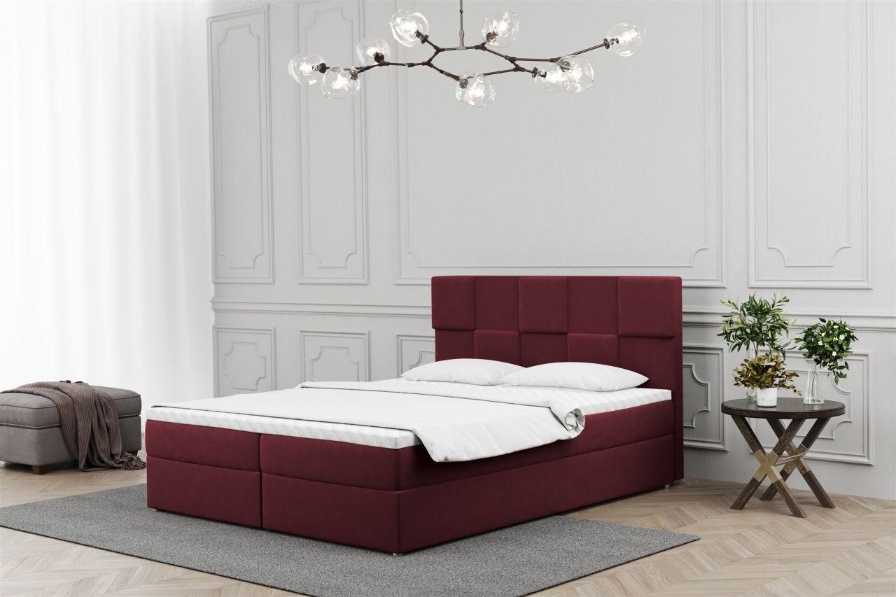 Boxspringbett Schlafzimmerbett JOLIE 200x220cm in Stoff Matt Velvet Weinrot