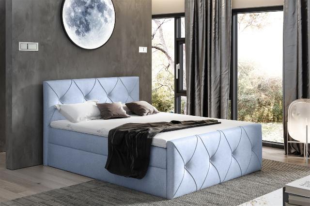 Boxspringbett Schlafzimmerbett LEWIS LUX 140x200cm in Stoff Monolith Sky