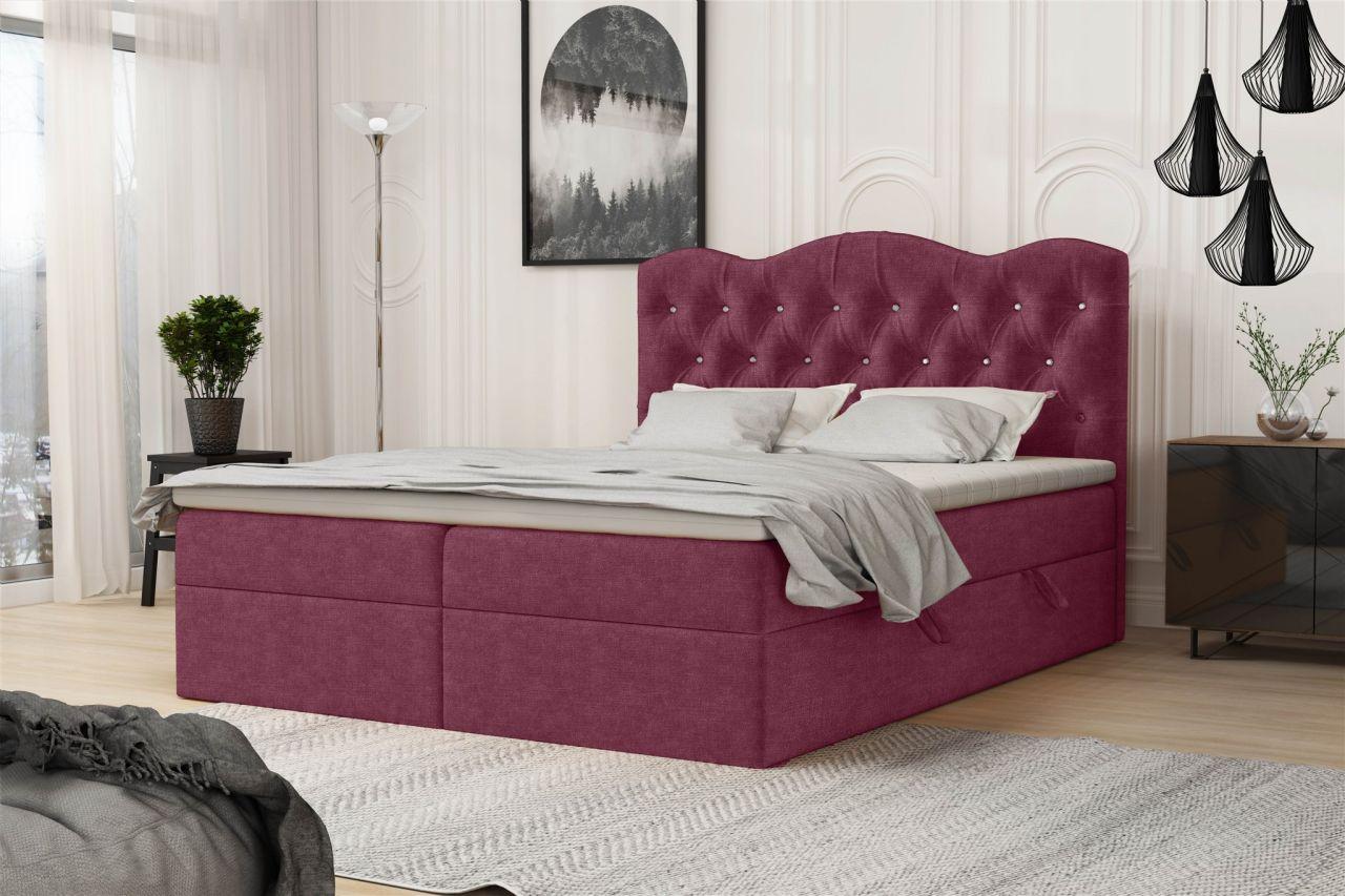 Boxspringbett Schlafzimmerbett LODOS 200x200cm Stoff Perfect Harmony Bordeaux