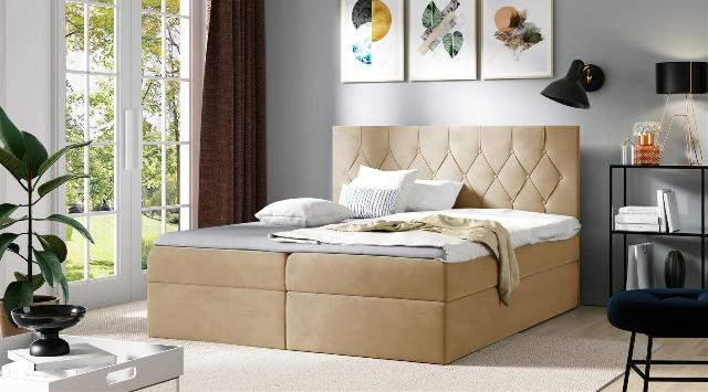 Boxspringbett Schlafzimmerbett MANOLIS Stoff "Alova" Senfgelb 140x220cm inkl. 2 x Bettkasten Boxspringbett / Polsterbett MANOLIS mit aufklappbaren Bettkästen Das extravagante Boxspring...
