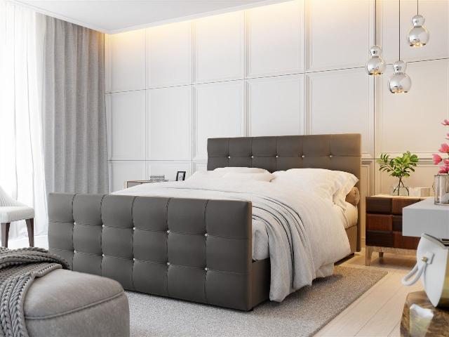 Boxspringbett Schlafzimmerbett MAURO Kunstleder "Madryt" in Dunkelgrau 120x220cm inkl. 2 x Bettkasten Boxspringbett / Polsterbett MAURO mit aufklappbaren Bettkästen Das extravagante Bo...