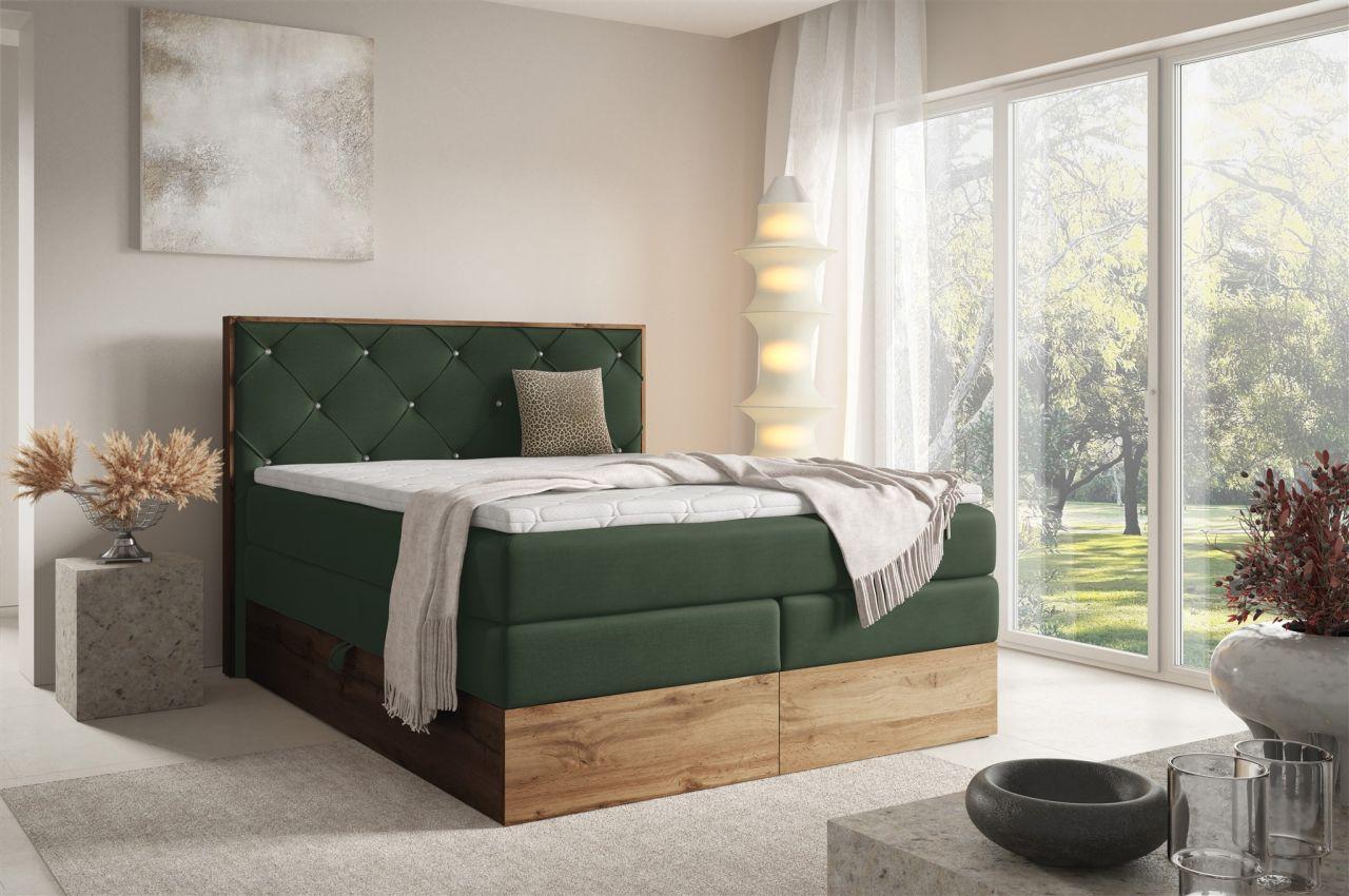 Boxspringbett Schlafzimmerbett NAVEL 200x200cm Stoff (Rouge): Braun inkl. Bettkasten Besonders ist der sichtbare Rahmen in Sonoma Eiche Optik Boxsprin...