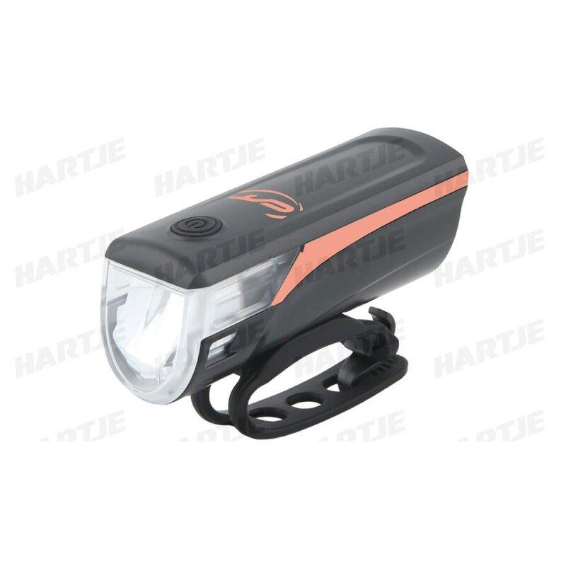 CONTEC Akku-LED-Leuchtenset "Speed-LED USB" SB-verpackt, 20Lux, USB, mit deutschem Prüfzeichen Bestehend aus LED-Scheinwerfer und LED-Rücklicht, inkl. Akku, 1x AAA Micro Batterie, mit Halterungen und USB-Kabel, schwarz / neored