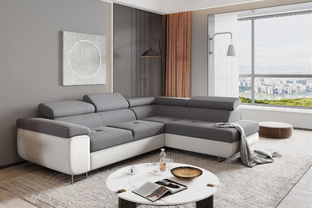 Couchgarnitur Ecksofa JADE mit Schlaffunktion Ottomane Rechts Stoff (Monolith / Inari) Creme / Grau Das modern gestaltete Schlaffunktionssofa JADE gefällt durch ein zeitloses...