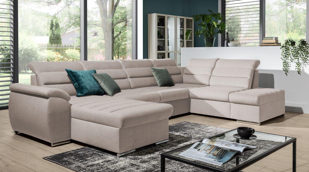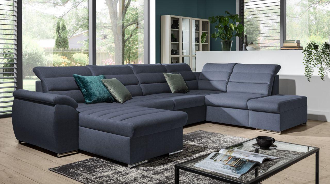 Couchgarnitur PASCARA U-Form mit Schlaffunktion - Korpus Schwarz Ottomane Links Das modern gestaltete Schlaffunktionssofa PESCARA gefällt durch ein zeitloses Design und einen hohen Komf...