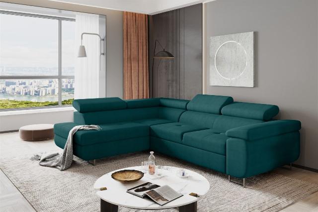 Couchgarnitur JADE Stoff Türkis mit Schlaffunktion Ottomane Links 959,00 EURO Zum Produkt
