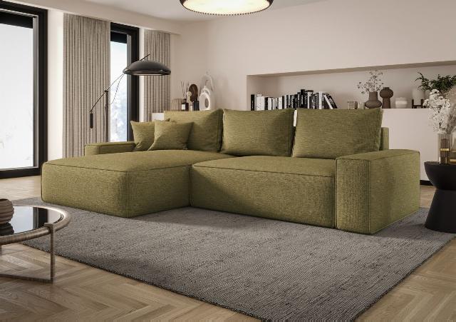 Ecksofa Schlafsofa Sofa WALKEN Stoff Aragon Olivgrün Ottomane Links 789,00 EURO Zum Produkt