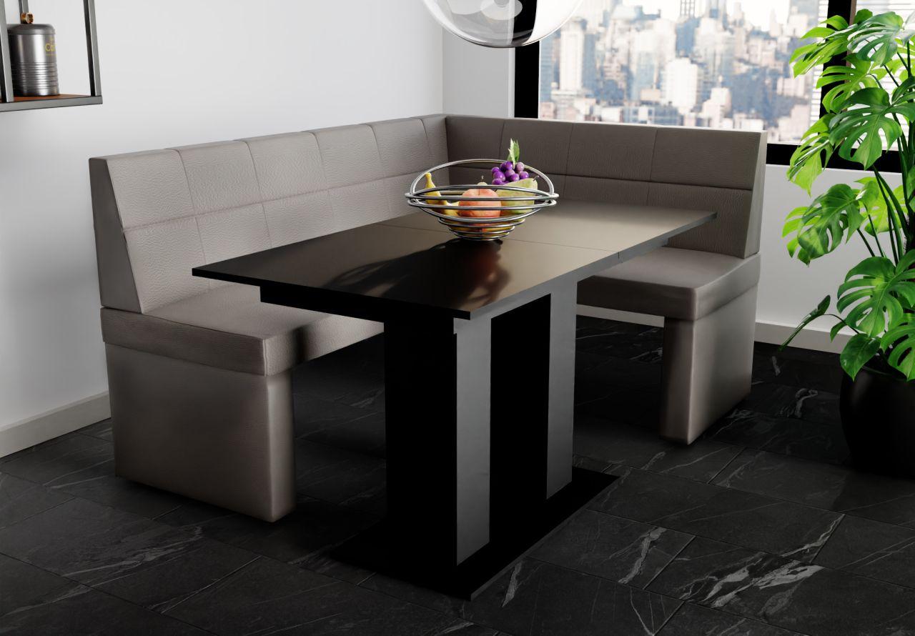 Eckbankgruppe 168 x 128 cm BLAKE Stoff: Kunstleder Madryt Farbton: Schwarz (Langer Schenkel Links) Esstisch DANTE Schwarz matt 130/170 x 80 cm Schaffen Sie mit Eckbankgruppe BLAKE / DANTE &nb...