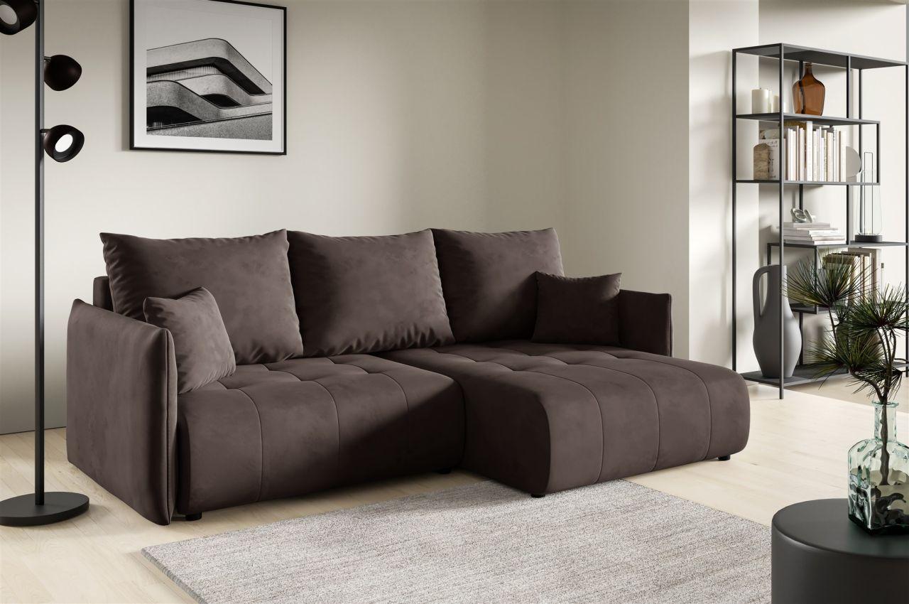Ecksofa Schlafsofa CANIO Stoff Monolith Dunkelbraun Ottomane Links
