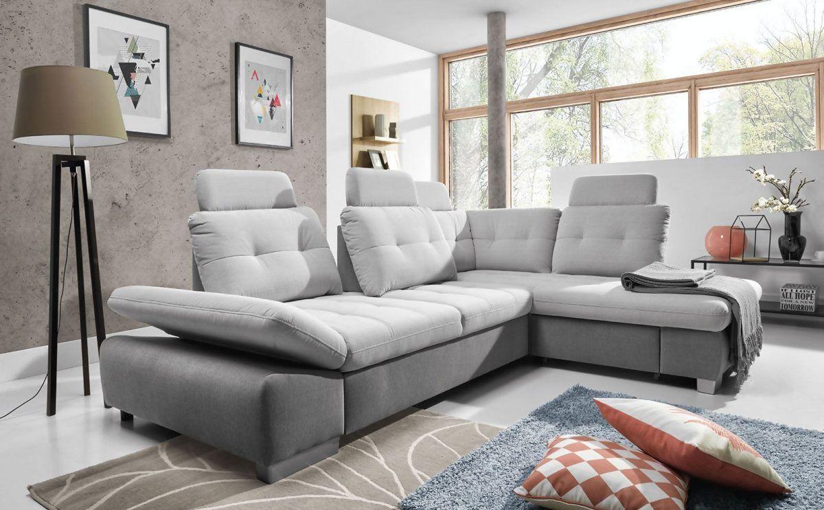 Ecksofa Schlafsofa REMON XL Grau/ Hellgrau Ottomane Links