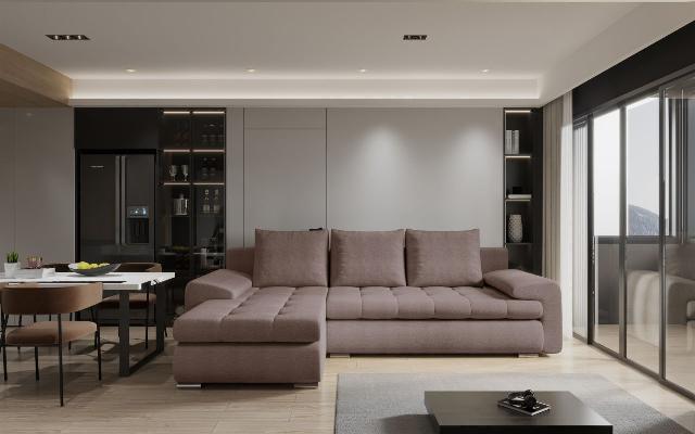Ecksofa Sofa HECKTOR mit Schlaffunktion Stoff Abriamo Altrosa Ottomane Rechts