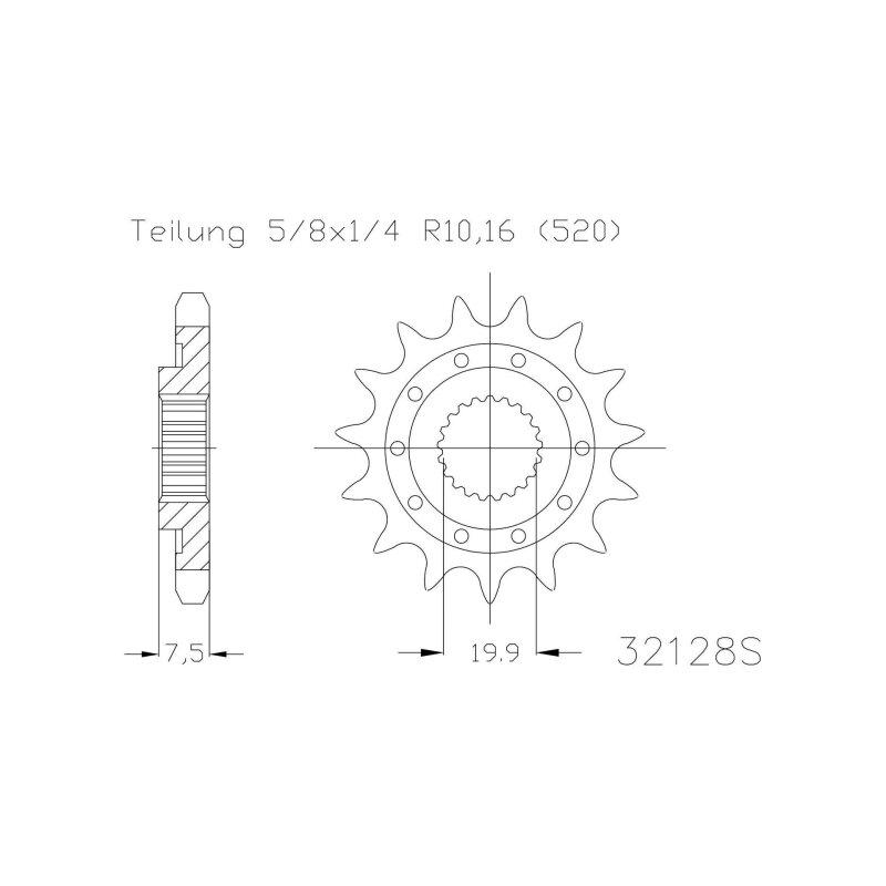 ESJOT Antriebsritzel "32020" 520, Stahl, 13 Zähne, Ausführung Superlight, gewichtsreduziert Ø 10%