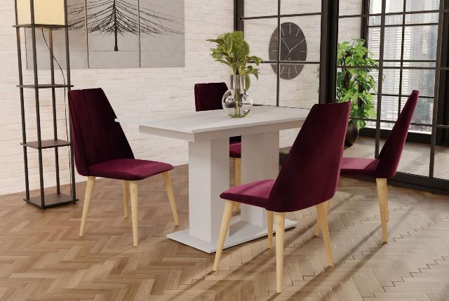 Essgruppe Weiss matt-Tisch mit 4 Bordeauxrot CAROS Stühlen für Esszimmer oder... 548,00 EURO Zum Produkt
