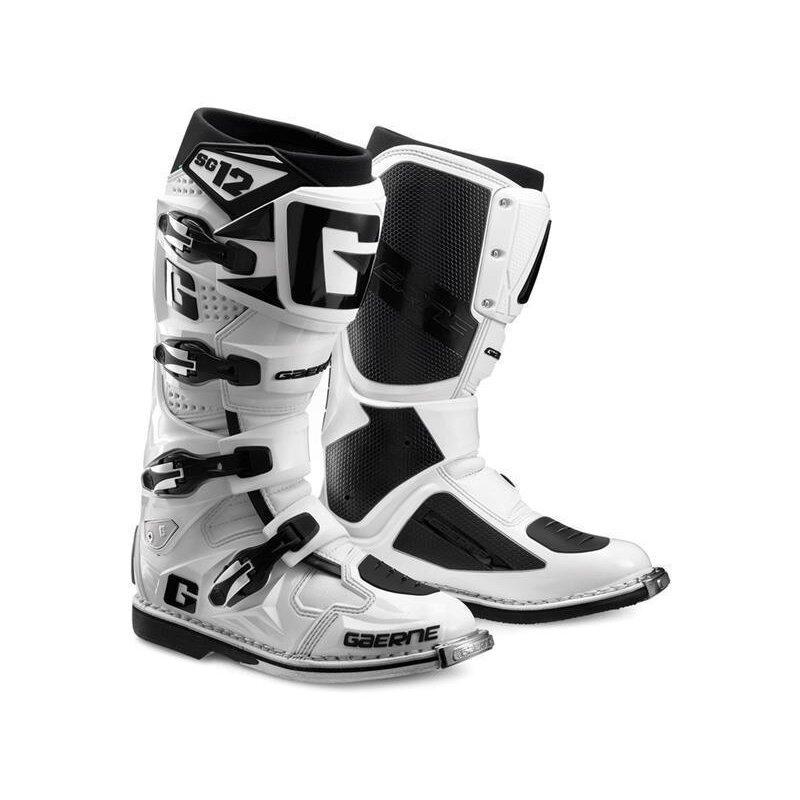 Gearne Stiefel Sg 12 Schwarz 49 GAERNE MOTOCROSS STIEFEL SG 12 SCHWARZ Mit dem SG12 bietet Gaerne einen HIGH-TECH-Stiefel in Sachen Design und Ausstattung. Er zählt bei Rennfahrern, Presse und allen MX-Piloten weltweit als THE BEST YOU CAN BUY WITH MONEY. Das patentierte Zweifach-Gelenksystem behindert den Bewegungsablauf nicht, wird jedoch effizient wirksam, sobald die anatomischen Grenzen überschritten werden und Verletzungen drohen. Neben der umfangreichen Sicherheitsausstattung wie z. B. den Kunststoffteilen, der Stahleinlage in der Sohle und der Stahlkappe an der Stiefelspitze überzeugt der SG12 auch in Sachen Komfort: der perforierte Schaft sorgt für gute Belüftung, die extrem elastische Staubabdeckung verhindert wirksam das Eindringen von Schmutz, der Einsatz im hinteren Bereich der Innensohle absorbiert Stöße, während im vorderen Bereich für angenehme Belüftung gesorgt wird. Und der bewährte Memory-Schaumstoff umschließt Ihren Fuß perfekt und ermöglicht somit ein absolut direktes und sicheres Fahrgefühl, besser als jede Konstruktion mit separatem Innenschuh je bieten kann. Hochwertiges, strapazierfähiges Rindsleder mit Kunstoff-Protektoren Dual Stage Pivot System (Zweifach-Gelenksystem) patentiert Stabilisierung des Knöchelgelenk mit flexiblem Bewegungsablauf weiche Stretch Staub und Schmutzabdichtung oben gute Belüftung durch Perforation am Schaft Schafthöhe circa 37 cm Wadenweite einstellbar durch Schienbein-Frontplatte mit 3 Schrauben Kunststoff-Protektoren am Knöchel, Ferse und Schienbein breite Alu-Schnallen verstellbar und leicht auswechselbar SCD-Polsterung im Schaft Mikrofaser Innenfutter mit ergonomisch geformten Memory-Cell Polsterung hitzebeständiger Wadenschutz mit GRIP-GUARD Kunstoff flexible Zonen an Spann und Ferse Schaltverstärkung aus stabilen Kunststoff anatomisch geformtes Fußbett mit stoßabsorbierendem Einsatz austausch- und waschbare Innensohle Das Fußbett ist auswechselbar und als Zubehör erhältlich die Sohle hat eine Stahleinlage und ist Öl-und Benzin resistent mit einer Stahlkappe geschützte Stiefelspitze mit griffiger, zweifach genähter Cross-Sohle Schnallen, Sohlen und Stahlkappen als Zubehör erhältlich CE Kennzeichnung Made in Italy Art. Nr.: 2174-001 Art. Bez.: GAERNE SG 12 BLACK Größe: 41-49