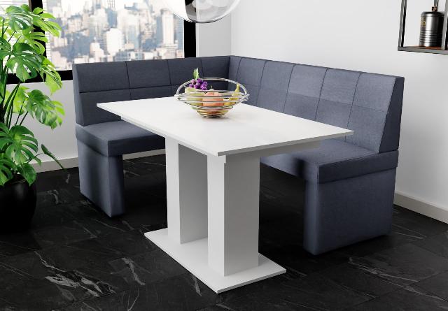 Eckbankgruppe 196x142 cm BLAKE XL R Stoff Soro Dunkelgrau / Esstisch DANTE Weiß 519,00 EURO Zum Produkt