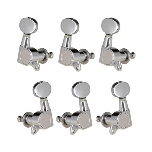 Gitarrensaiten-Stimmwirbel Stimmgeräte Versiegelte Maschinenköpfe Grover-Stimmgeräte Stimmschlüssel Ovaler Knopf 3 Links 3 Rechts für E-Gitarre oder Akustikgitarre Chromschwarz