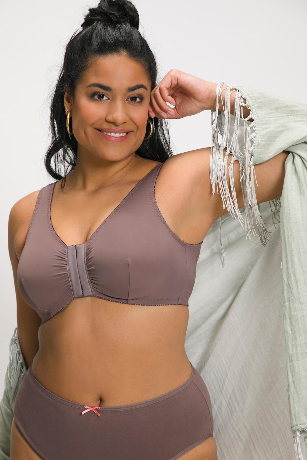 Das Bustier setzt statt auf künstliche Formgebung auf einen natürlichen, aber dennoch eleganten Look. Durch den Verzicht auf Schalen in den BH-Cups ist das Modell leicht, atmungsaktiv und angenehm auf der Haut. Die Träger sind extrabreit und gepolstert, damit das Trageempfinden besonders angenehm ist. Der Vorderverschluss sorgt für einfaches und bequemes An- und Ausziehen des BHs. Die Herstellung aus hochwertiger Mikrofaser als Material ermöglicht zudem einen fließenden Fall der Oberbekleidung.