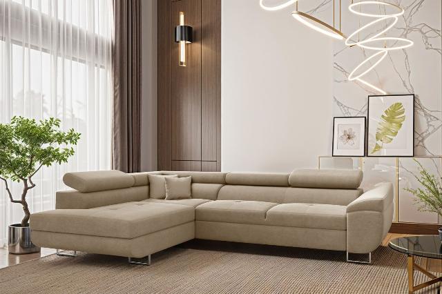Ecksofa Schlafsofa Sofa CARMELO in Stoff Nova Beige Ottomane Links 1018,00 EURO Zum Produkt