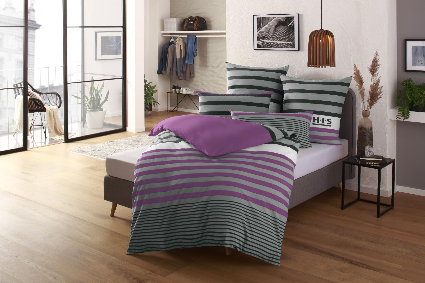 H.I.S Bettwäsche "Majoran" 3 tlg. gestreifte Bettwäsche in verschiedenen Qualitäten
