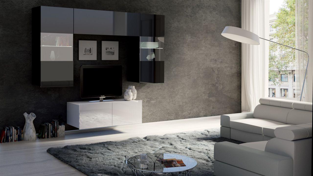 Mediawand Wohnwand 4 tlg - LABRI 10 - Weiss / Schwarz Hochglanz 456,00 EURO Zum Produkt