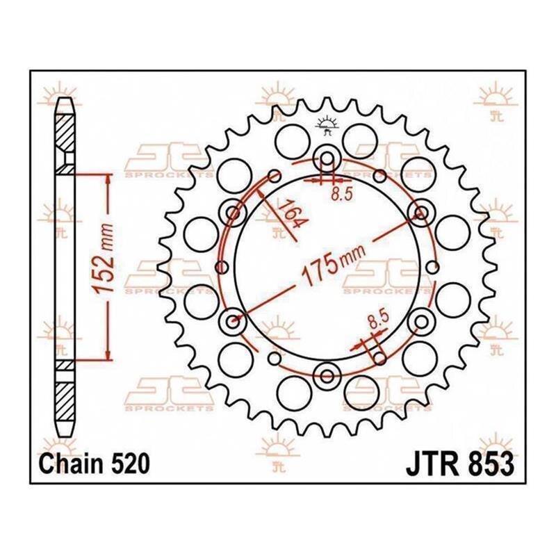 JT Kettenrad 49T 520 JTR460.49JT-KETTENRÄDER Am Computer entwickelt für ultimative Stärke bei minimalem Gewicht JT kombiniert Spitzentechnologie mit Topmaterialien, um eine Palette hochwertigster Kettenräder von unschlagbarem Wert zu produzieren Jedes Kettenrad erfüllt oder übertrifft höchstmögliche Qualitätsstandards Die Kettenräder sind wärmebehandelt und glasperlengestrahlt, um die Oberflächenspannung des Materials zu verringern Ritzel bestehen aus hochwertiger SCM420 Chrom-Molybdän-Stahllegierung Stahlkettenräder bestehen aus hochwertigem japanischen C49/C50 Vergütungsstahl Aluminiumkettenräder bestehen aus hochfestem exloxiertem 7075 T-6 Aluminium aus Österreich JT-Aluminiumkettenräder sind circa 30% leichter als vergleichbare Stahlteile, was die ungefederte Rotationsmasse verringert und die Leistung erhöht Leichte Ritzel für einige Anwendungen erhältlich