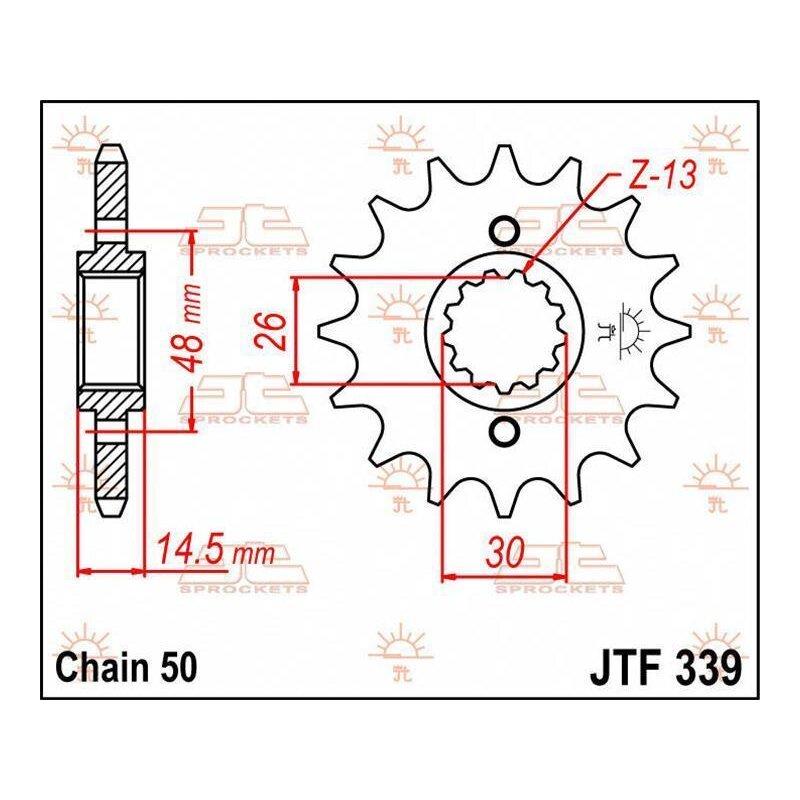 JT Ritzel 15T 530 JTF579.15JT-KETTENRÄDER Am Computer entwickelt für ultimative Stärke bei minimalem Gewicht JT kombiniert Spitzentechnologie mit Topmaterialien, um eine Palette hochwertigster Kettenräder von unschlagbarem Wert zu produzieren Jedes Kettenrad erfüllt oder übertrifft höchstmögliche Qualitätsstandards Die Kettenräder sind wärmebehandelt und glasperlengestrahlt, um die Oberflächenspannung des Materials zu verringern Ritzel bestehen aus hochwertiger SCM420 Chrom-Molybdän-Stahllegierung Stahlkettenräder bestehen aus hochwertigem japanischen C49/C50 Vergütungsstahl Aluminiumkettenräder bestehen aus hochfestem exloxiertem 7075 T-6 Aluminium aus Österreich JT-Aluminiumkettenräder sind circa 30% leichter als vergleichbare Stahlteile, was die ungefederte Rotationsmasse verringert und die Leistung erhöht Leichte Ritzel für einige Anwendungen erhältlich