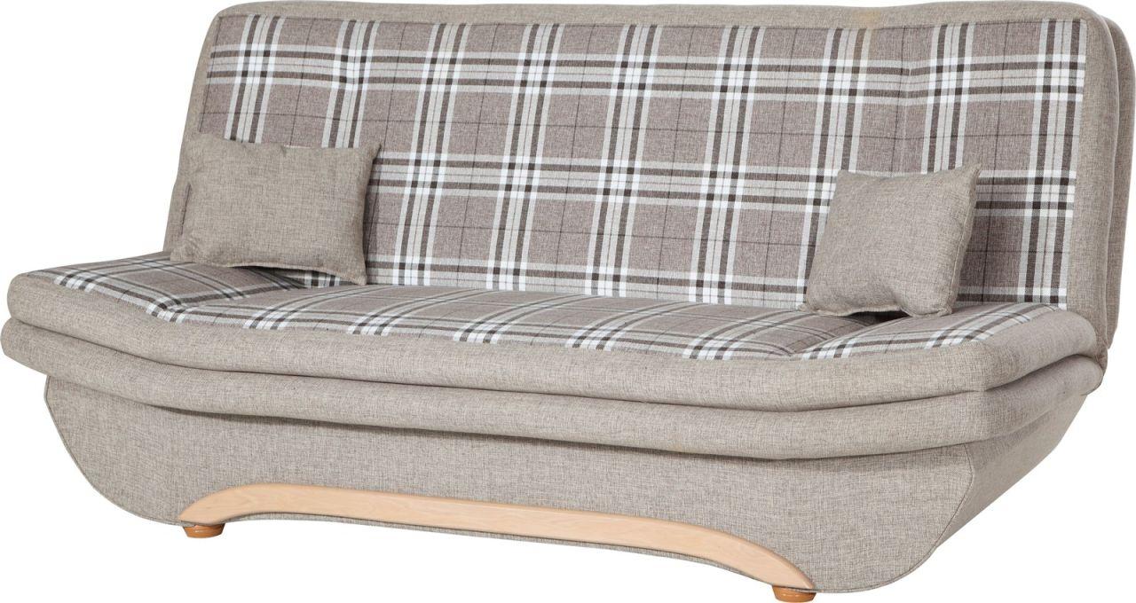 Klick-klack-Sofa Schlafsofa KANDY in Stoff: Hellgrau-Karo Material stabile Unterkonstruktion aus Holz Ausführung: Federkern-Schaumpolsterung dekorative Holz Chatosen Bezug: Stoff Pflegeh...