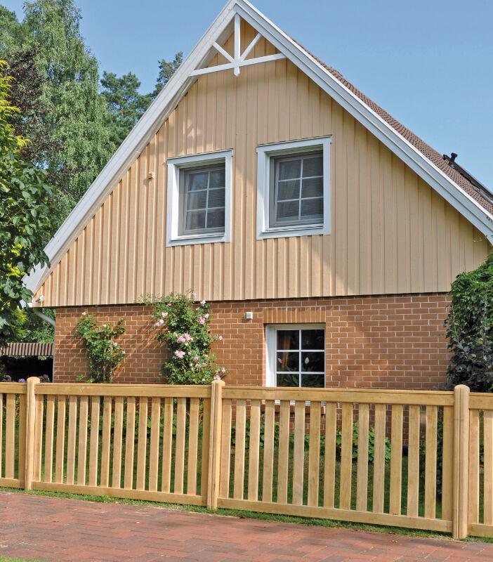LIGHTLINE Lamellenzaun Die Zaunelemente des LIGHTLINE-Lamellenzaun sind in weiß aus hochwertigem Fensterkunststoff gefertigt und besitzen eine pflegeleichte, lichtbeständige und wetterfeste Oberfläche. Das Rahmenprofil hat ein Maß von 25 x 50 mm, die Lamellen 7 x 100 mm und sind geflochten. Zaunhalter sind inklusiv. Erhältlich sind die Elemente in verschiedenen Ausführungen. Technische Daten aus hochwertigem Fensterkunststoff weiß inkl. Zaunhalter Rahmenprofil 25 x 50 mm Lamellen 7 x 100 mm, geflochten