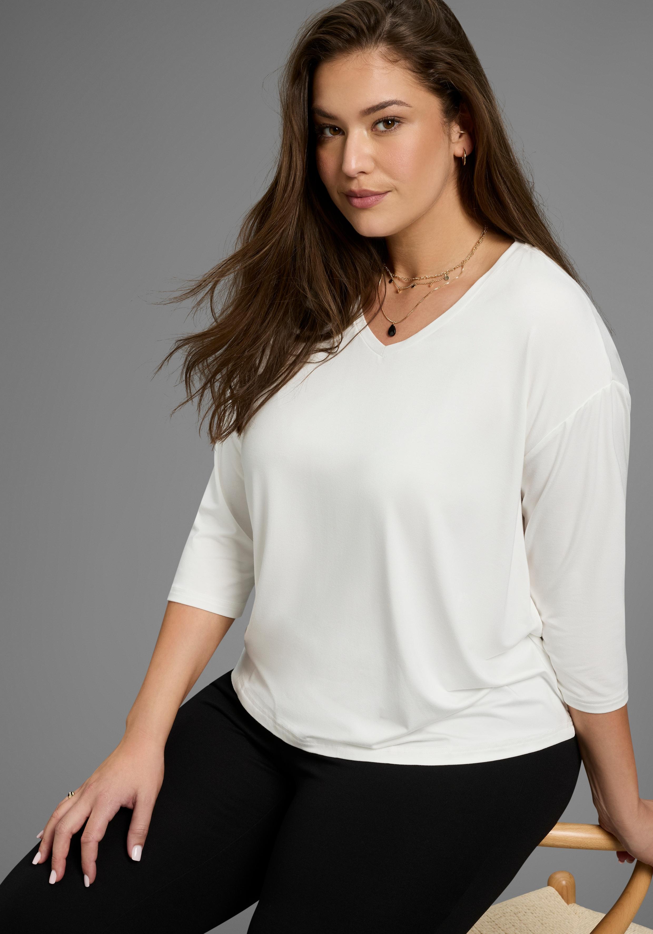 Laura Scott CURVE 3/4-Arm-Shirt mit V-Ausschnitt und lockerer Passform – GROSSE GRÖSSEN