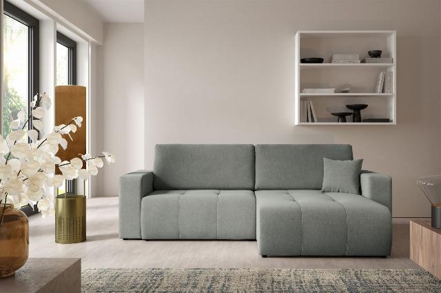 Ecksofa Sofa mit Schlaffunktion AUGUSTO in Stoff Wind Grau Ottomane Rechts 828,00 EURO Zum Produkt