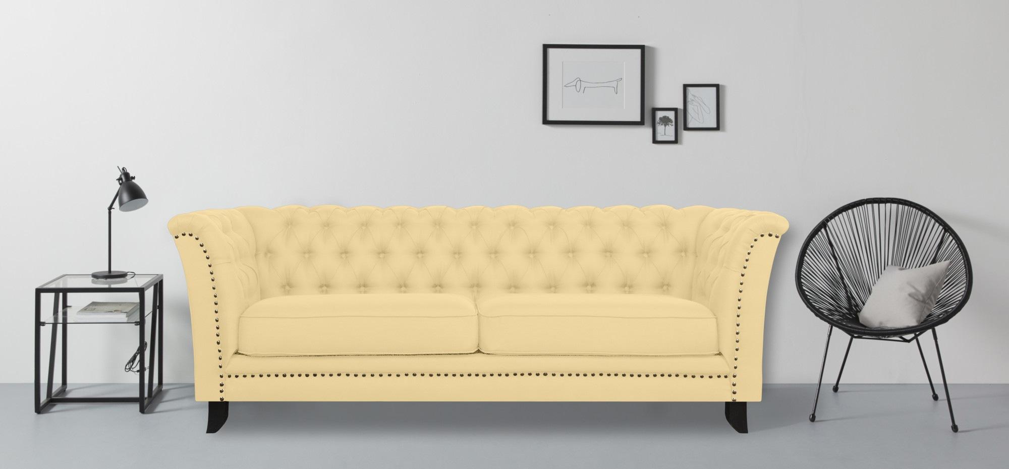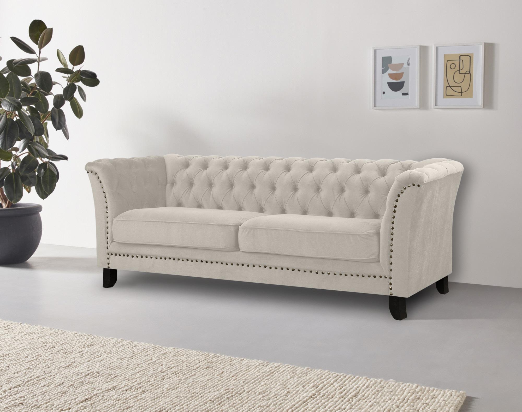Leonique 3-Sitzer "Lynelle", Chesterfield Design mit typischer Knopfheftung und Nietenbesatz