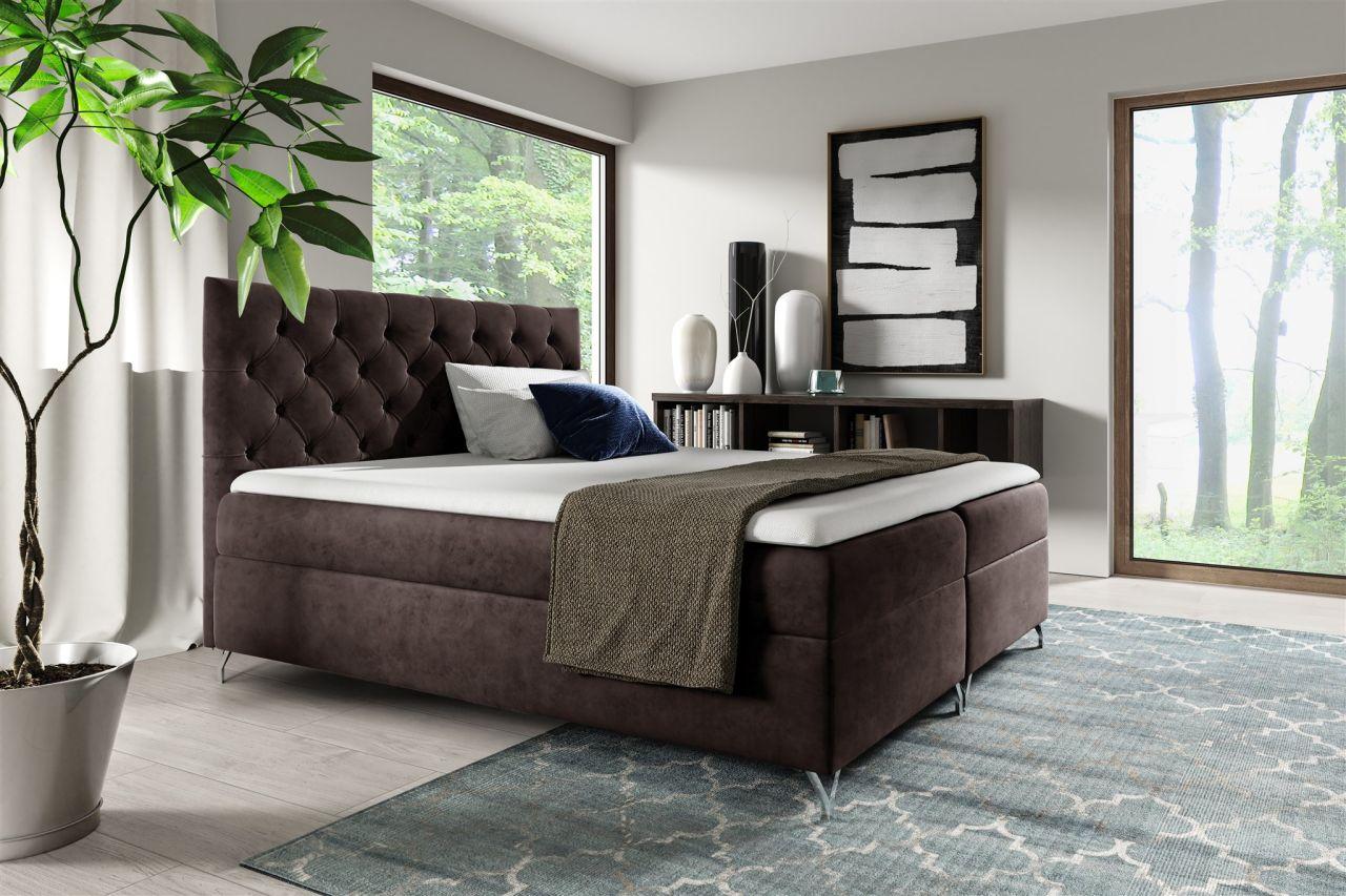 Boxspringbett Schlafzimmerbett AMBRE 180x200cm in Stoff Fresh Schokobraun 709,00 EURO Zum Produkt