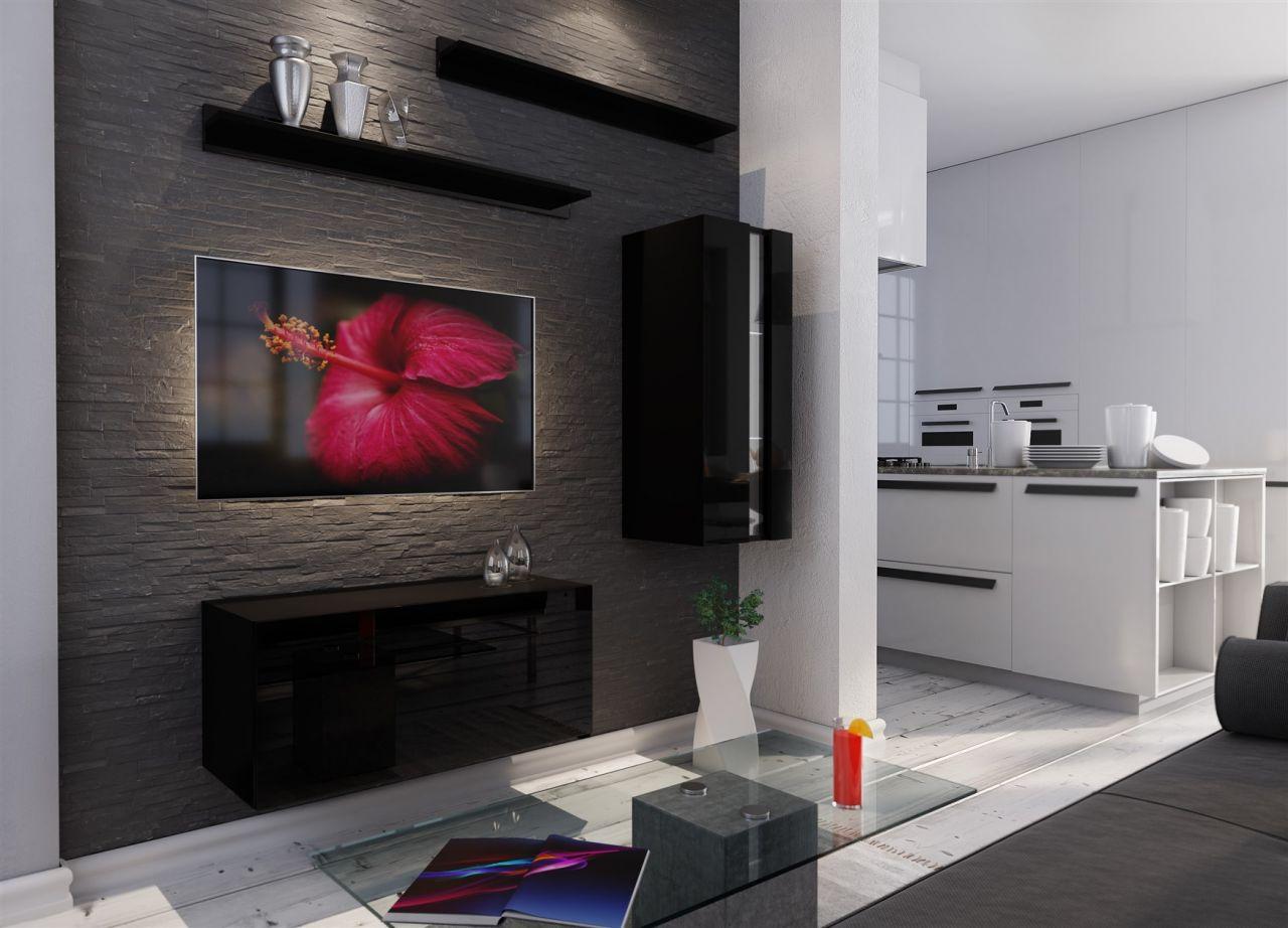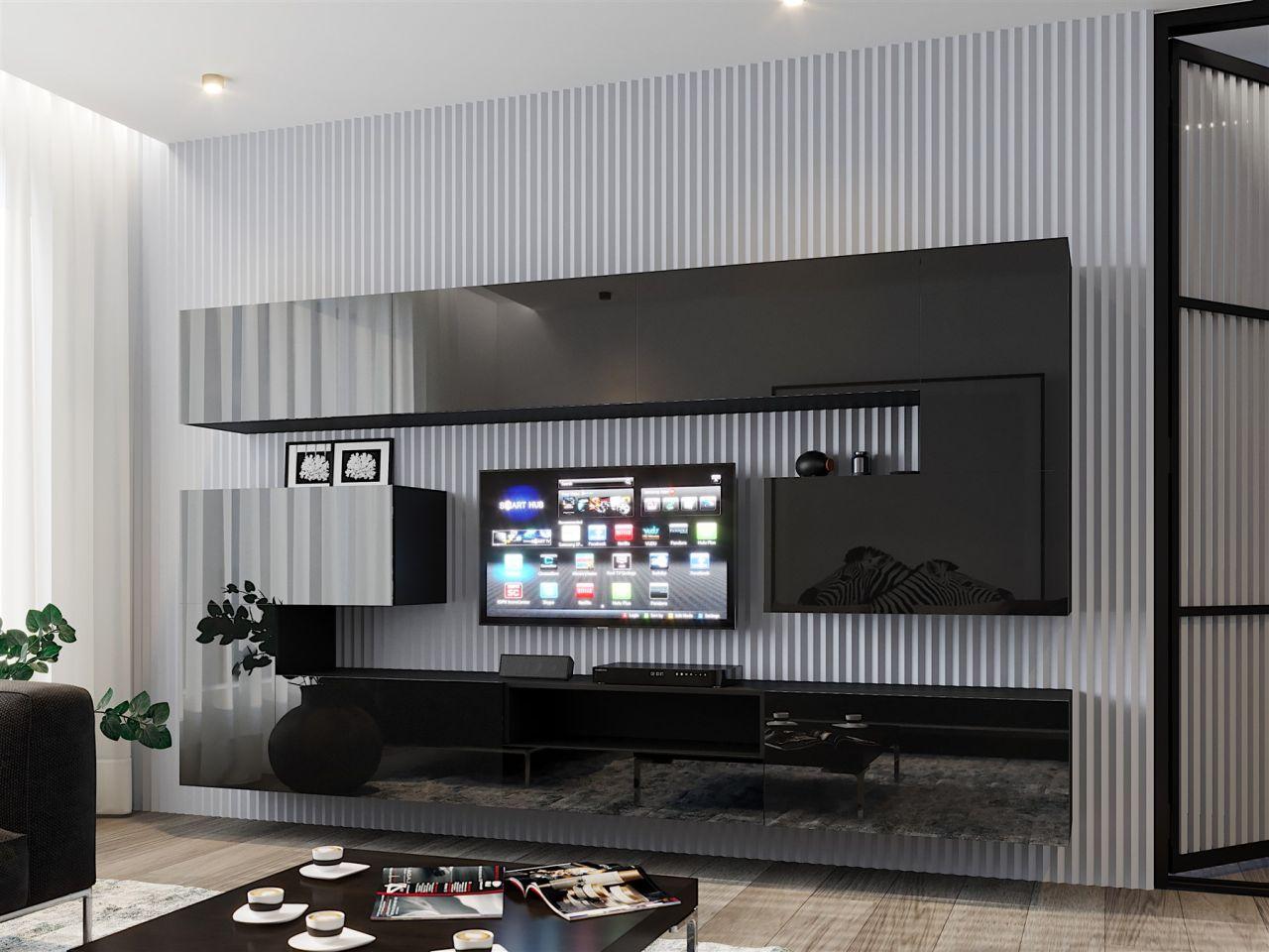 Mediawand Wohnwand 10 tlg - NEXI XL 21 - Schwarz Hochglanz