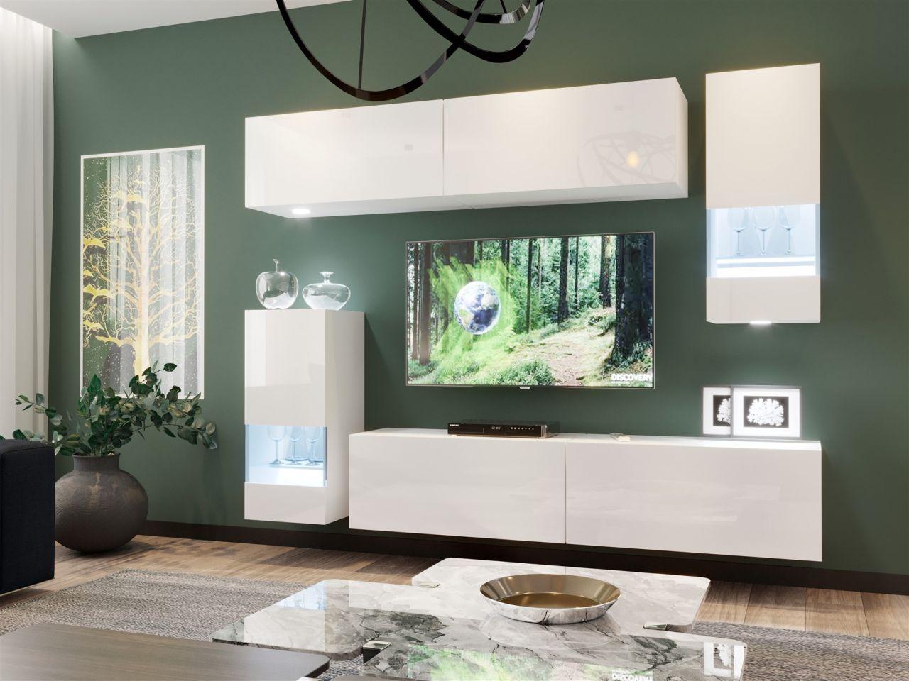Mediawand Wohnwand 6 tlg - NEXI XL 27 - Weiss Hochglanz inkl. LED